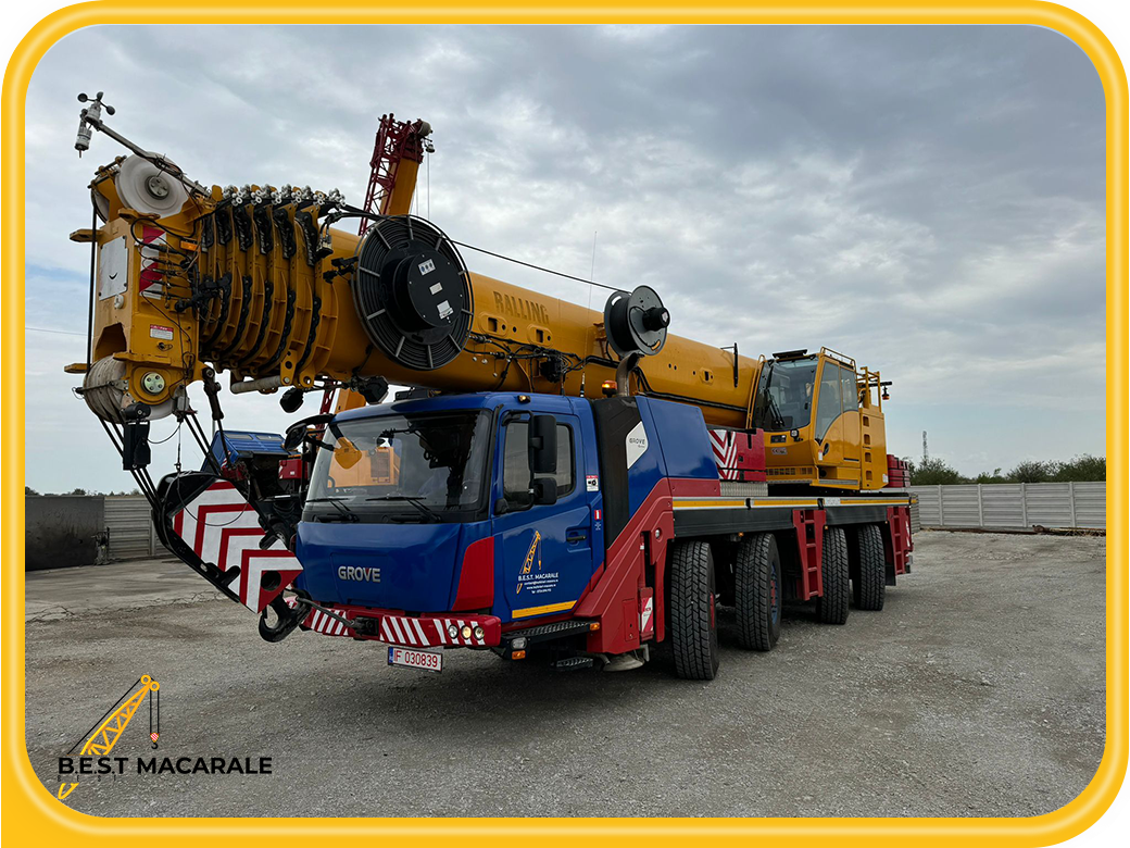 100 TONE | 60 m + 17 metri prelungitor= 77 metri | 4 Axe/ 50.000kg | Descarcă fișa tehnică | Descriere utilaj |